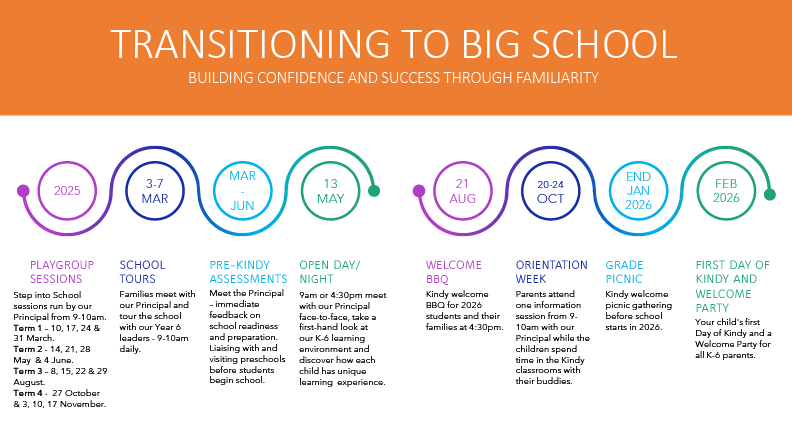 Enrolled Kindy 2026 students and their families are welcome to meet for a fun social evening on 21st August 2025 at 4:30pm! Invitations will be emailed out to all enrolled families prior to the event.